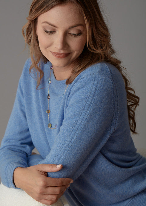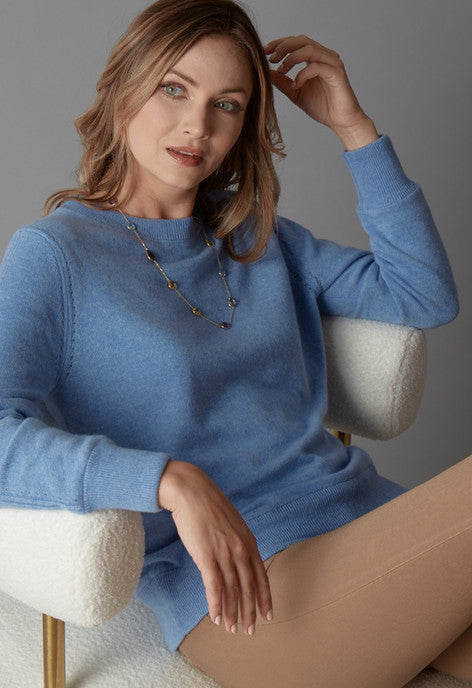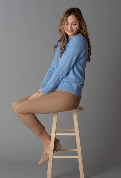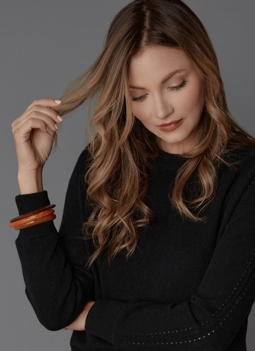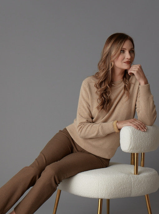 This sweater has LuxLined’s proprietary “silver lining.” We set out on an epic quest to create an ultra-thin and ultra-stretchy lining for our luxury yarn sweaters, and we promise you’ll appreciate our obsession from the moment you slip one on!