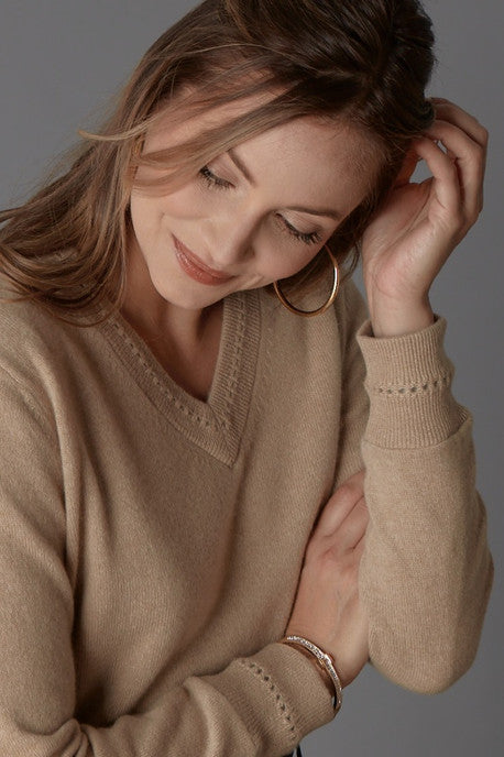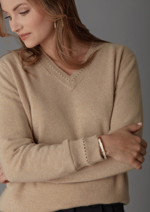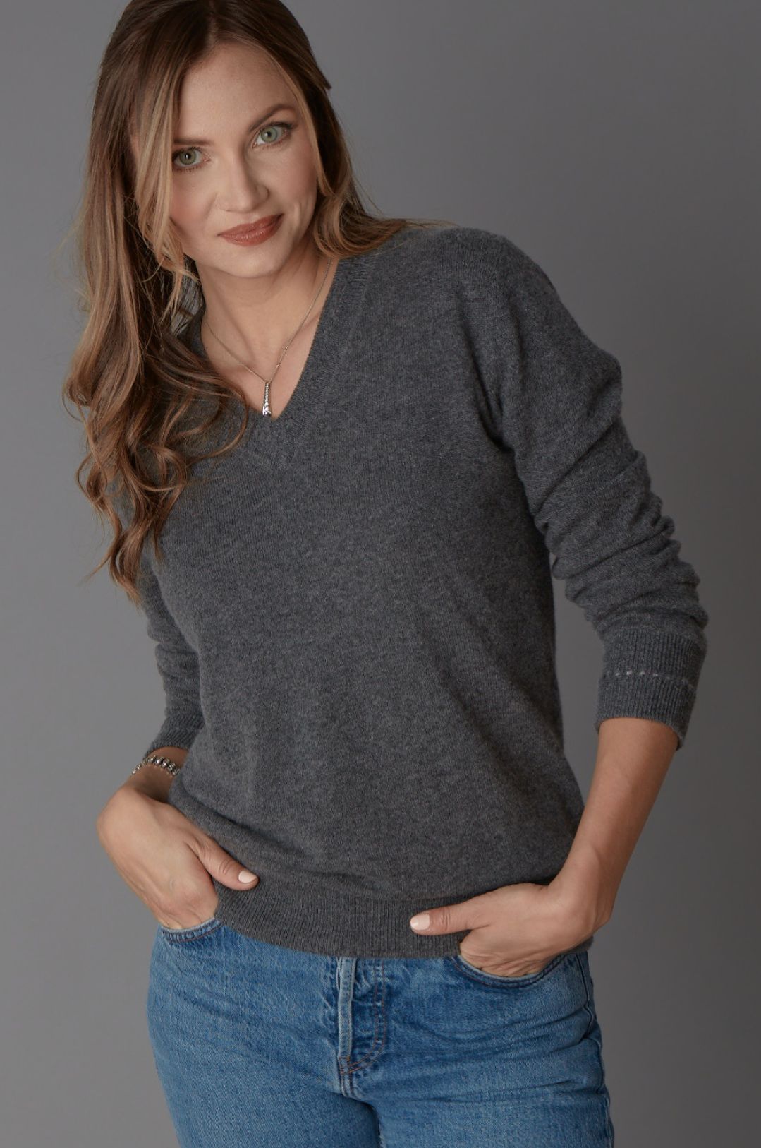 A nod to the classics, our 100% Mongolian 2-Ply Cashmere V-Neck Pullover has the ease of a relaxed fit with the styling sophistication to tuck into dressy trousers or pair with your favorite jeans.